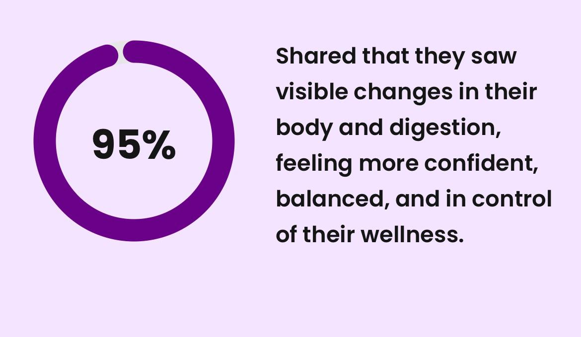 Most women start noticing visible changes — less bloating, more steady energy, improved digestion — within the first 2–4 weeks.
